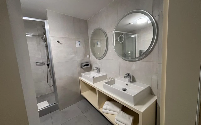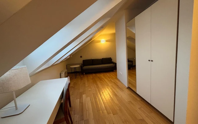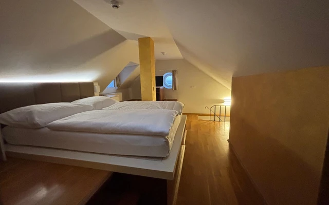 Apartmá Duplex s mezonetem nabízí výjimečný prostor a komfort v nově zrekonstruované historické budově. Moderní design se zde harmonicky prolíná s původní architekturou, čímž vzniká jedinečná atmosféra pro náročné hosty. Apartmá je rozloženo na dvou podlažích – spodní část tvoří obývací prostor s pohodlným posezením a rozkládacím gaučem, zatímco v horním patře se nachází ložnice s kvalitní postelí. K dispozici je také prostorná koupelna a výhled do klidného dvora nebo na okolní historickou zástavbu.