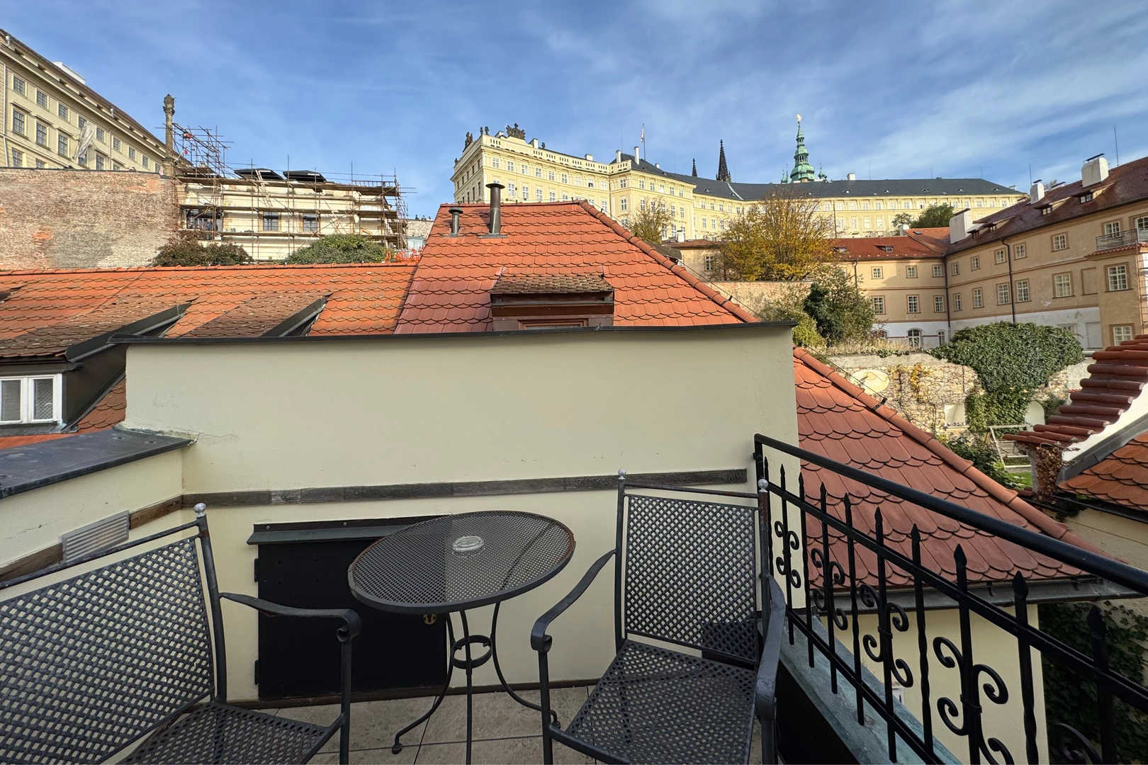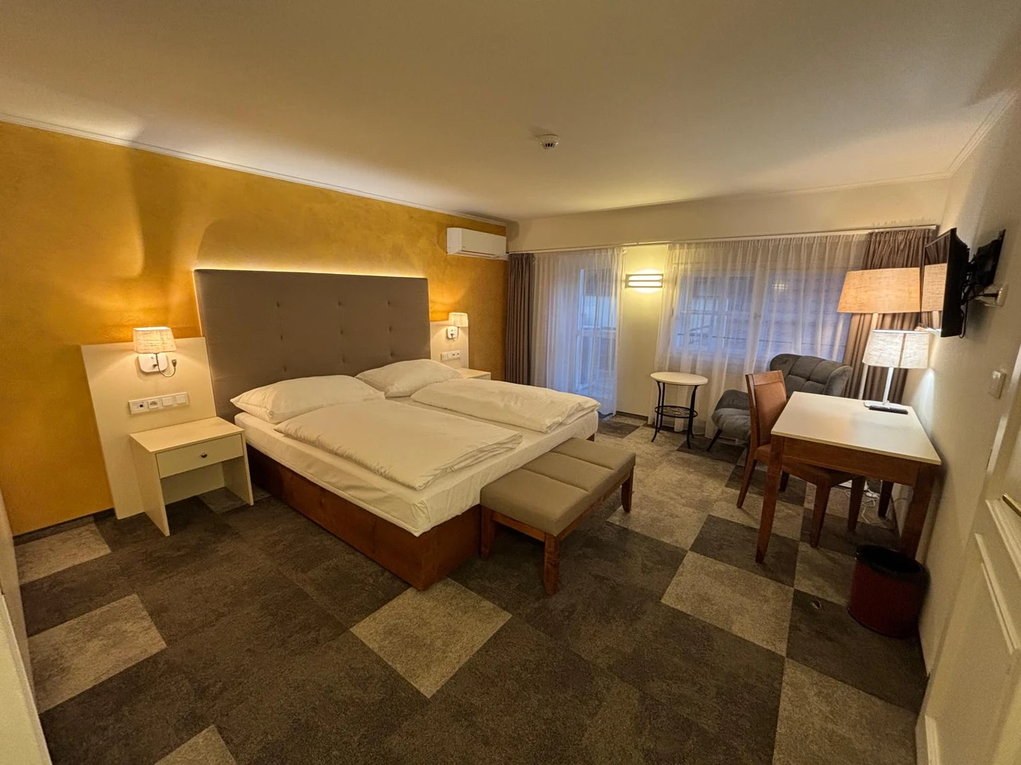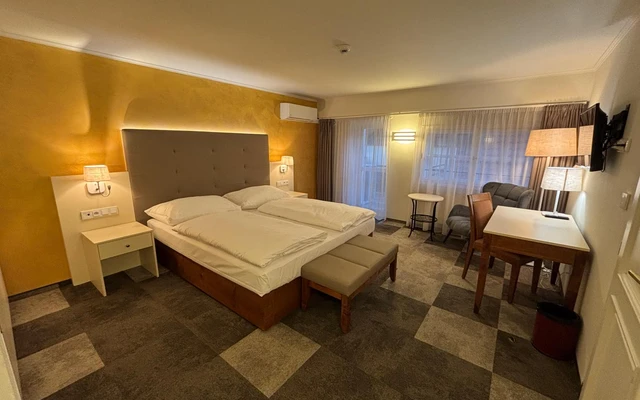 Dvoulůžkový pokoj deluxe s terasou nabízí pohodlné a stylové ubytování v nově zrekonstruovaných prostorách historické budovy. Moderní interiér je doplněn soukromou terasou, kde si hosté mohou vychutnat ranní kávu nebo večerní posezení pod širým nebem. Pokoj je vybaven kvalitní postelí, elegantní koupelnou a vším potřebným pro příjemný a odpočinkový pobyt.